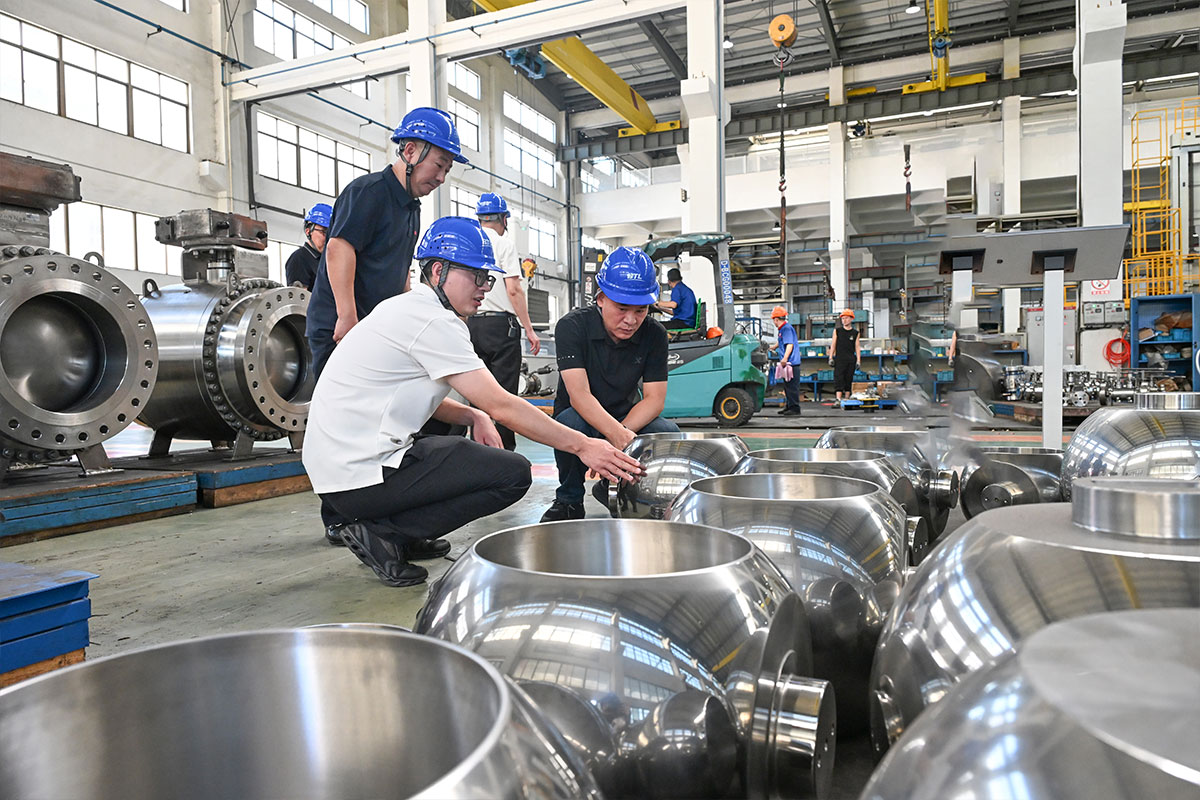 在焊接區(qū)域,考察團詳細察看了高標準的焊接工藝及無損檢測設備。伯特利嚴格遵循API、CE等國際認證標準,通過先進的焊接技術(shù)與質(zhì)量控制體系,確保產(chǎn)品密封性能與結(jié)構(gòu)強度達到行業(yè)領(lǐng)先水平。